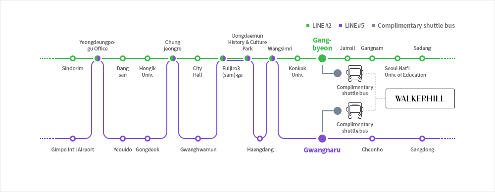 Location of Complimentary Shuttle pick-up service via Gangbyeon Station (Line #2)